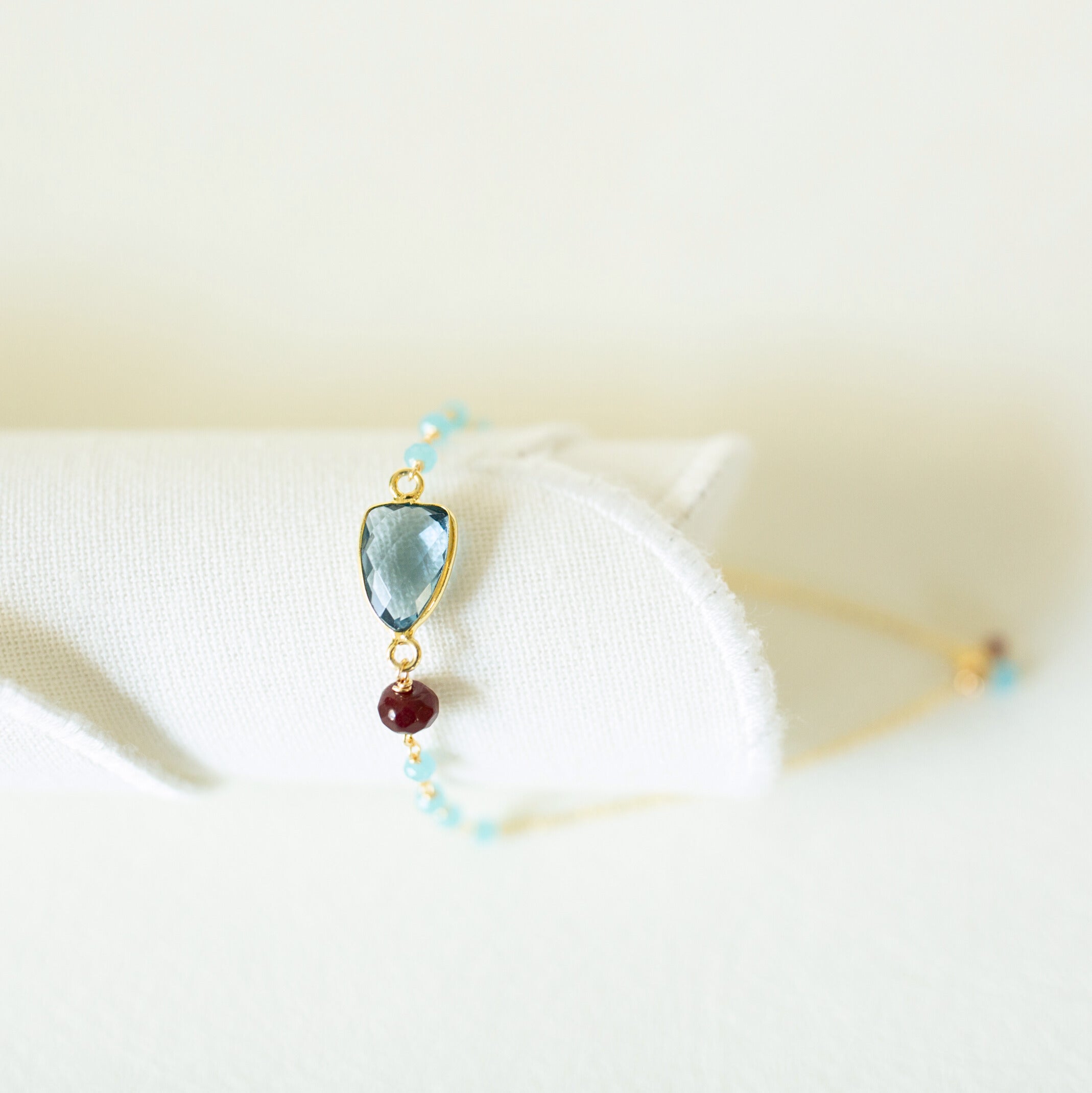 A deep ocean blue, this London Blue Quartz stone is just the right amount of arm drama. Handmade with a sliding clasp to fit any wrist. Available in tarnish resistant rhodium plated silver or 14k gold plated (vermeil).